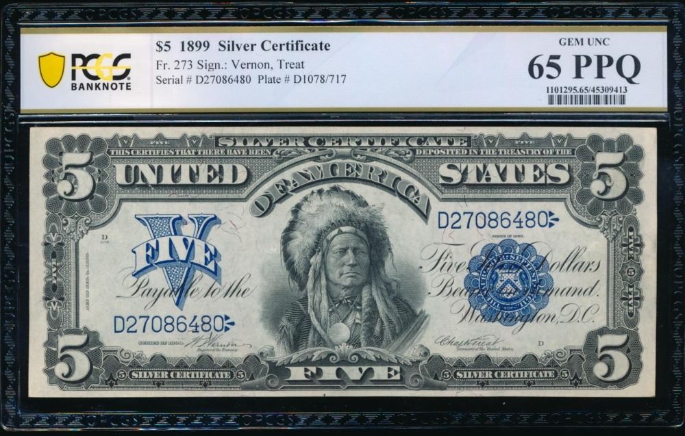 One 1899 $5 Chief Silver Certificate PCGS 65PPQ.