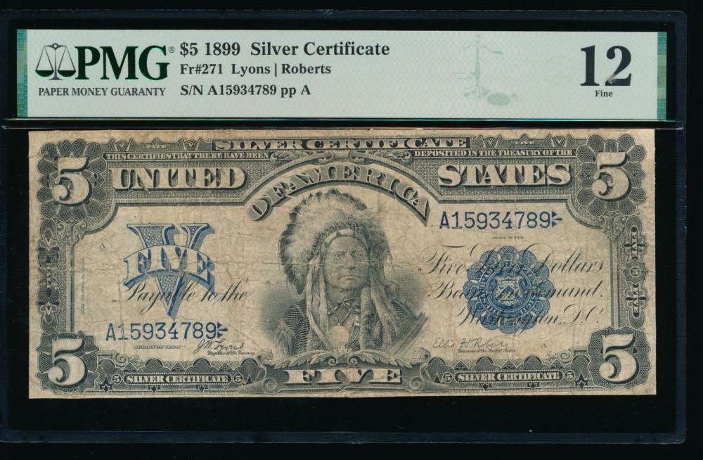 One 1899 $5 Chief Silver Certificate PMG 12.