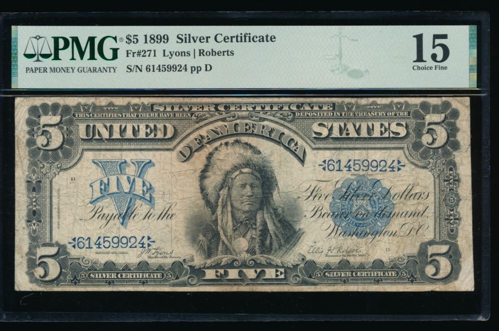 One 1899 $5 Chief Silver Certificate PMG 15.