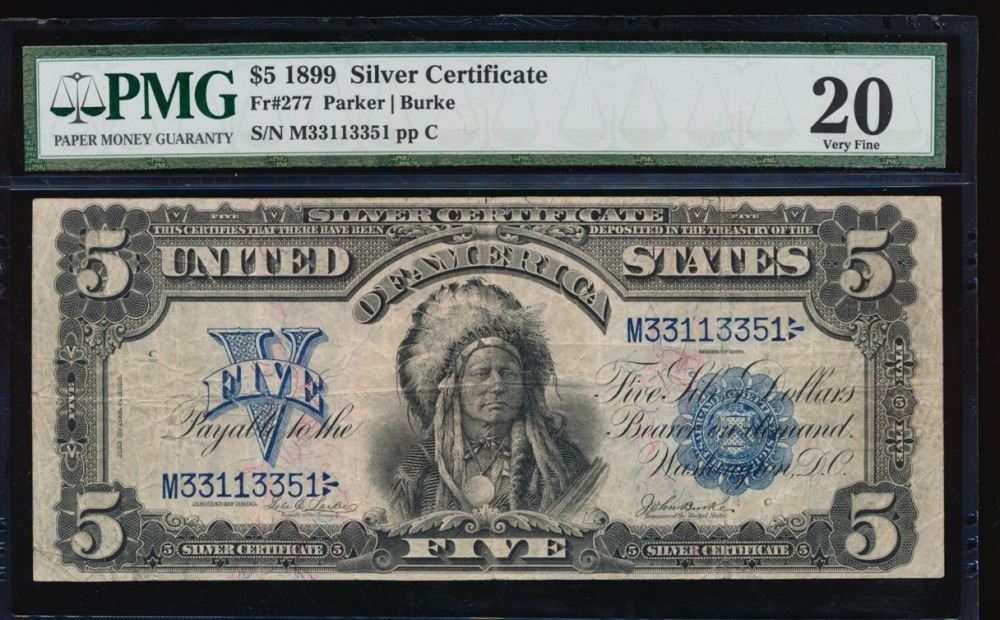 One 1899 $5 Chief Silver Certificate PMG 20.