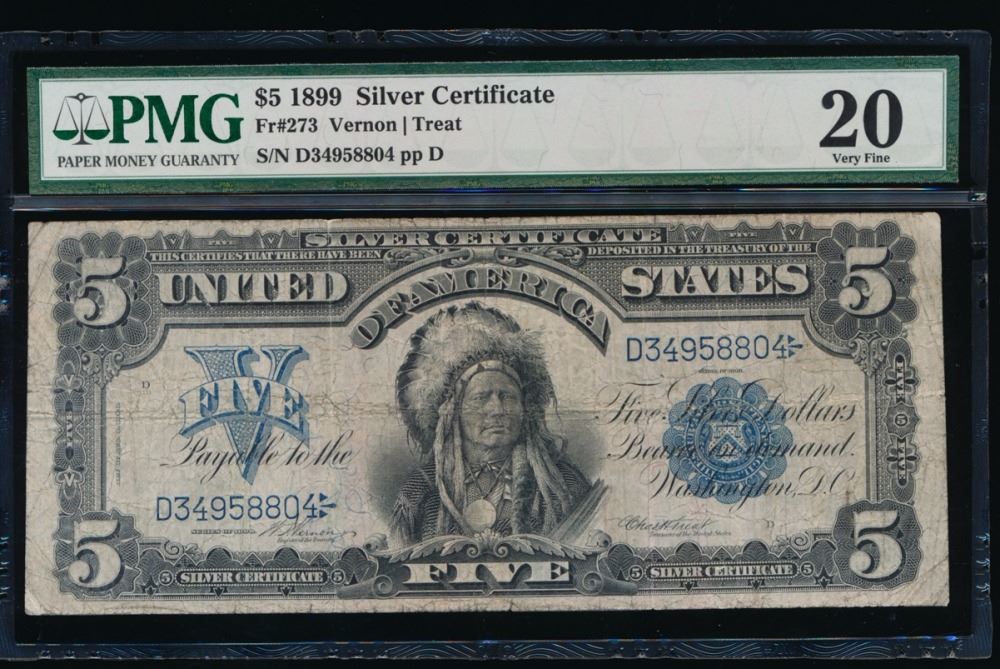 One 1899 $5 Chief Silver Certificate PMG 20.