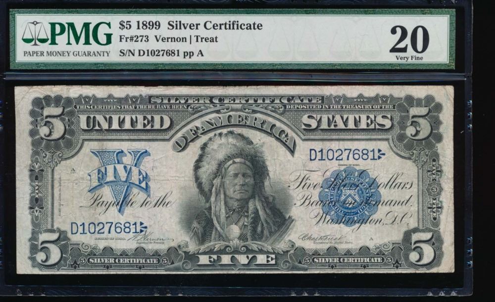 One 1899 $5 Chief Silver Certificate PMG 20.