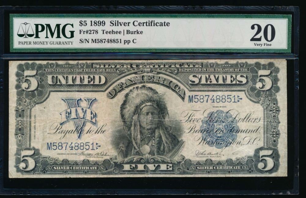 One 1899 $5 Chief Silver Certificate PMG 20.