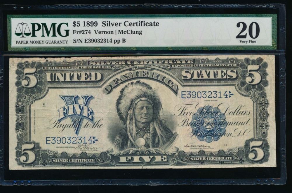 One 1899 $5 Chief Silver Certificate PMG 20.
