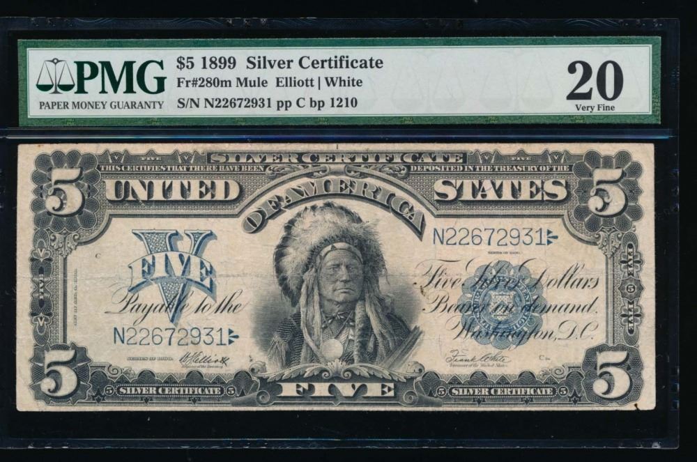 One 1899 $5 Chief Silver Certificate PMG 20.
