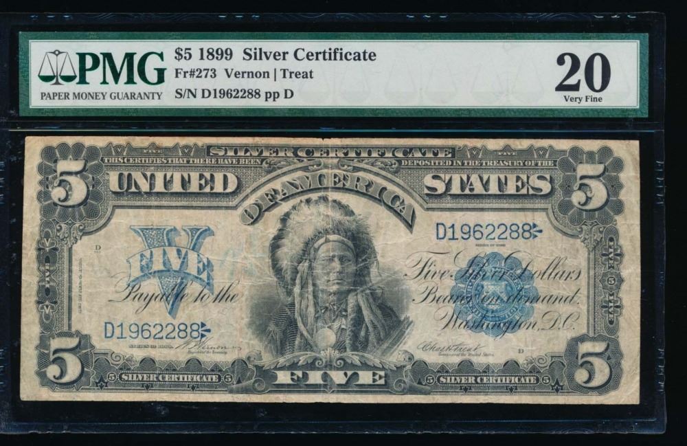 One 1899 $5 Chief Silver Certificate PMG 20.