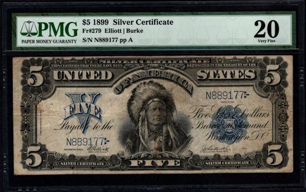 One 1899 $5 Chief Silver Certificate PMG 20.