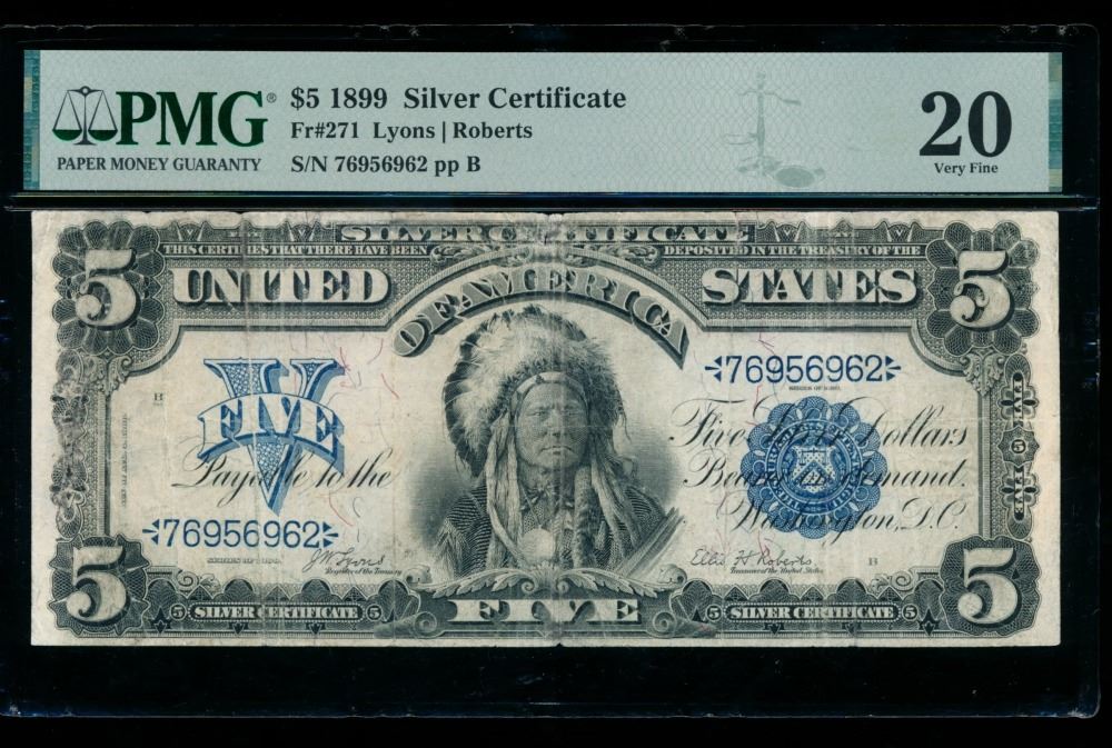 One 1899 $5 Chief Silver Certificate PMG 20.