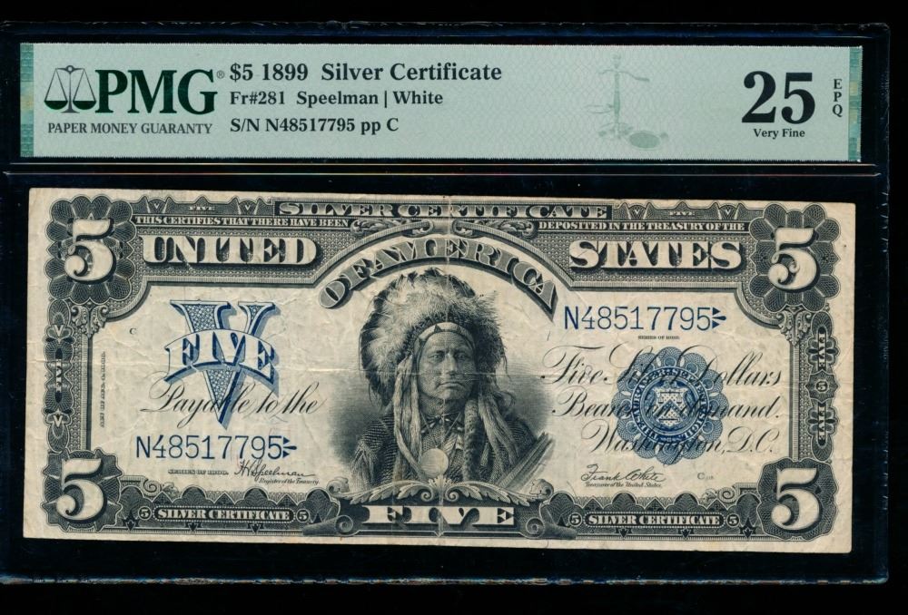 One 1899 $5 Chief Silver Certificate PMG 25EPQ.