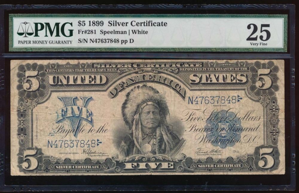 One 1899 $5 Chief Silver Certificate PMG 25.