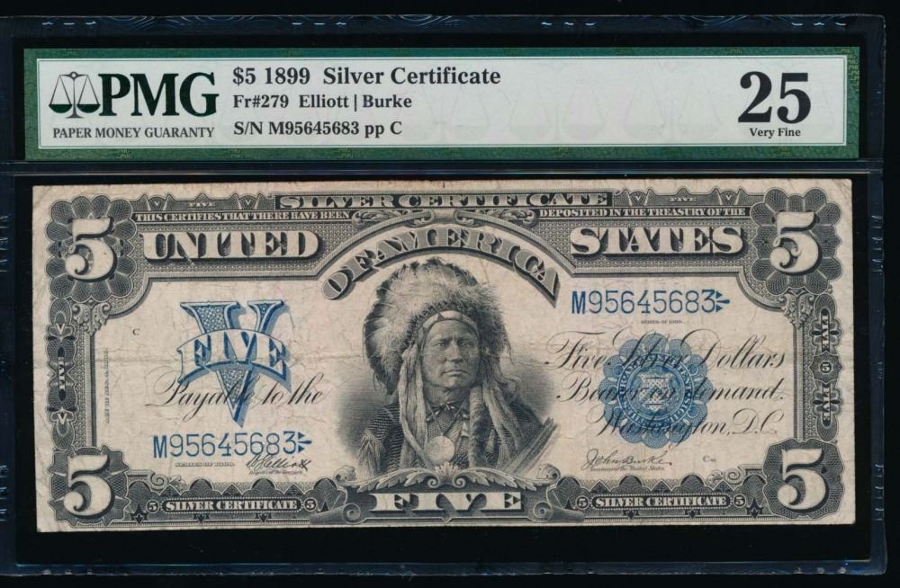 One 1899 $5 Chief Silver Certificate PMG 25.
