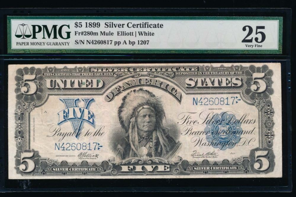 One 1899 $5 Chief Silver Certificate PMG 25.