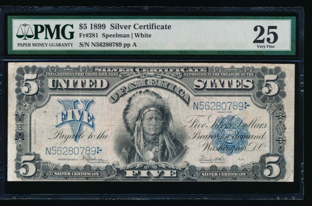One 1899 $5 Chief Silver Certificate PMG 25.