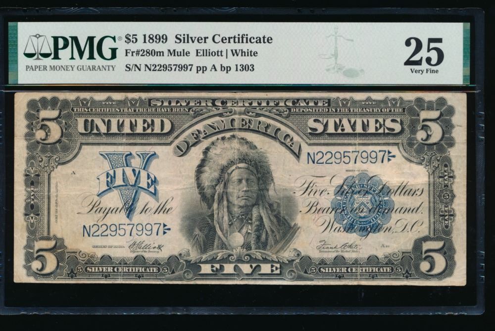 One 1899 $5 Chief Silver Certificate PMG 25.
