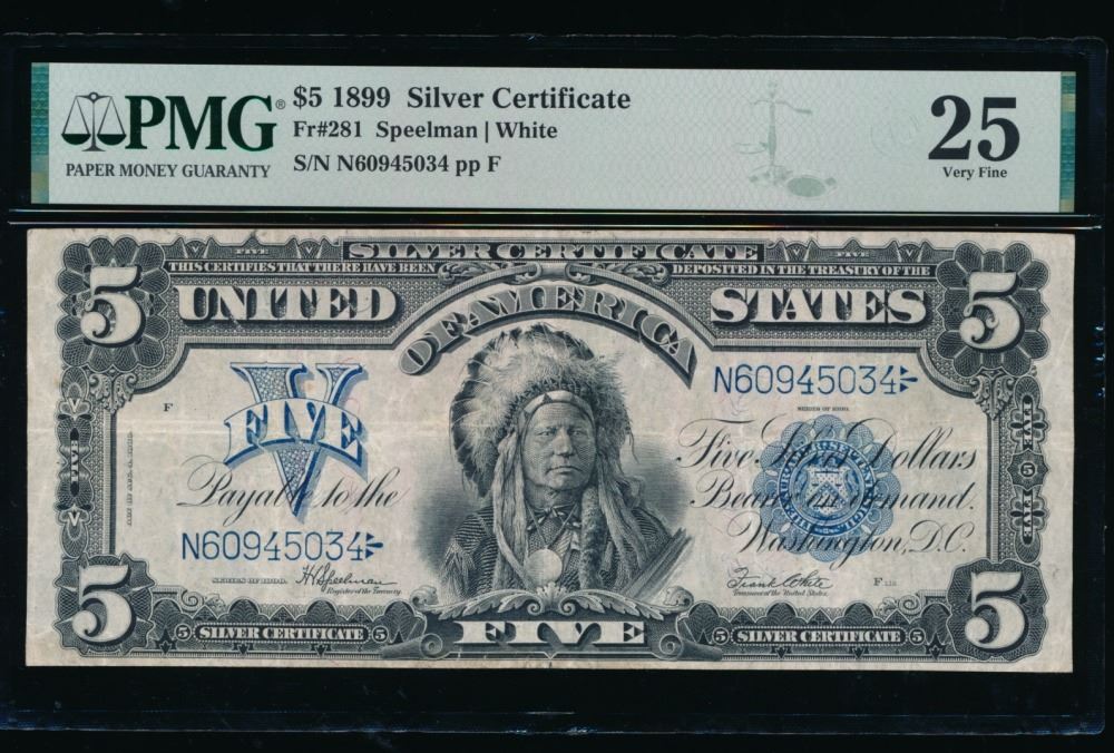 One 1899 $5 Chief Silver Certificate PMG 25.