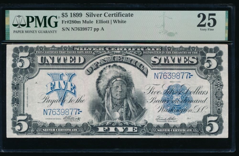 One 1899 $5 Chief Silver Certificate PMG 25.