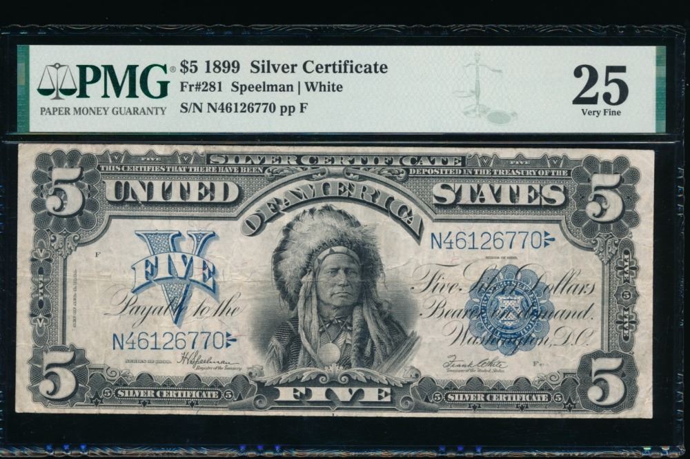 One 1899 $5 Chief Silver Certificate PMG 25.