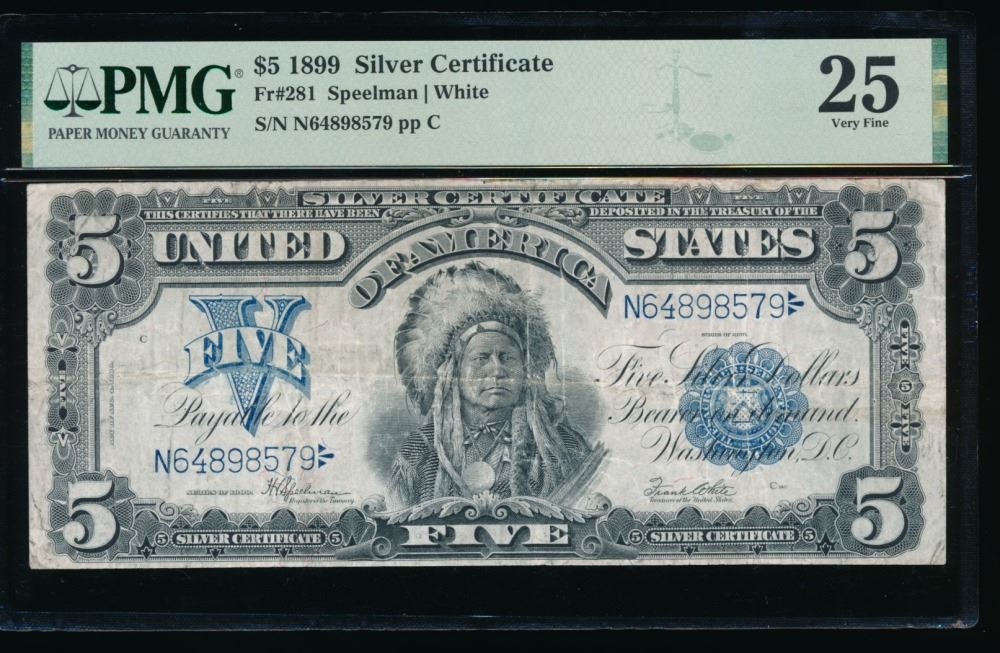 One 1899 $5 Chief Silver Certificate PMG 25.