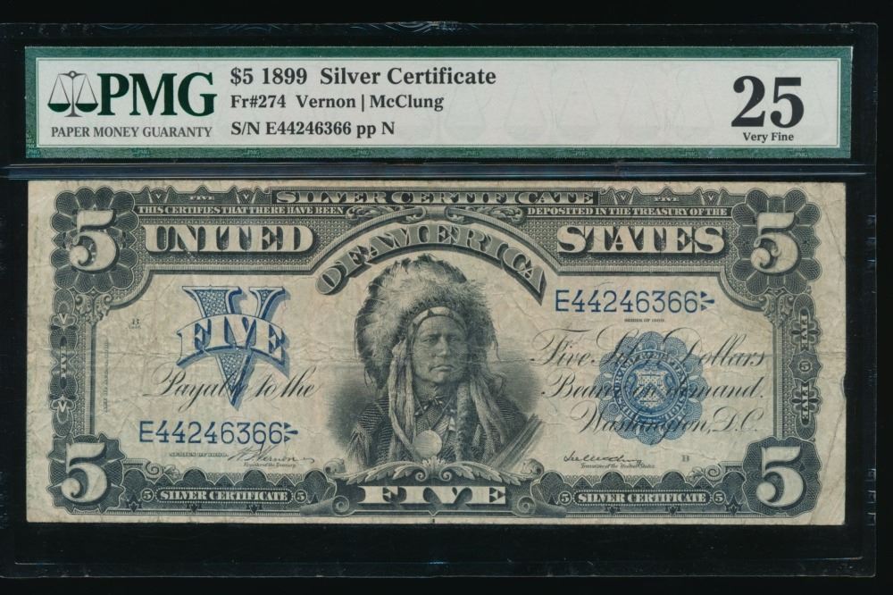 One 1899 $5 Chief Silver Certificate PMG 25.