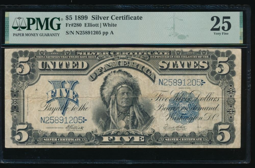 One 1899 $5 Chief Silver Certificate PMG 25.