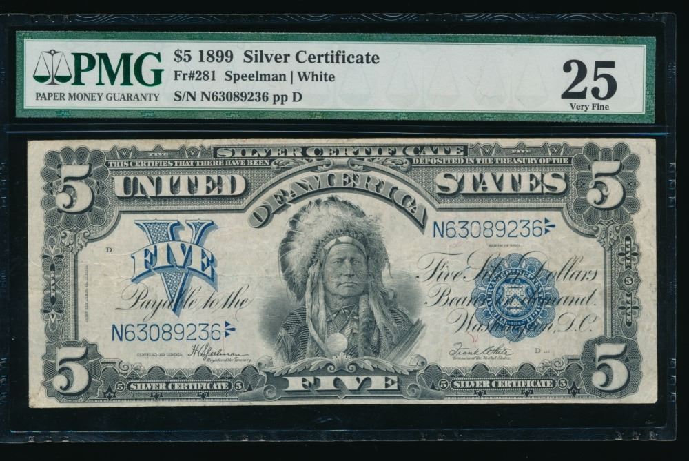One 1899 $5 Chief Silver Certificate PMG 25.