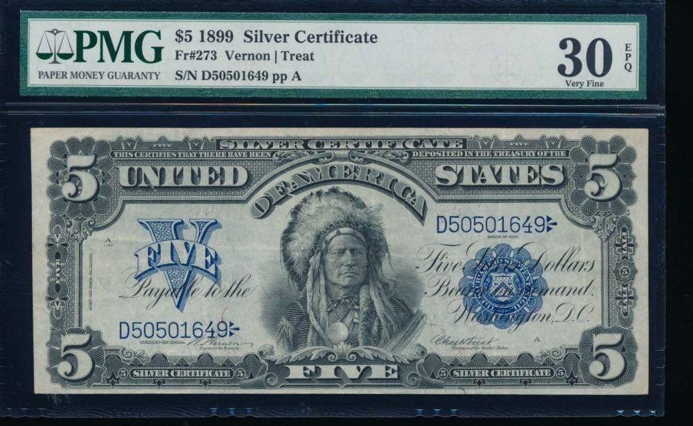 One 1899 $5 Chief Silver Certificate PMG 30EPQ.
