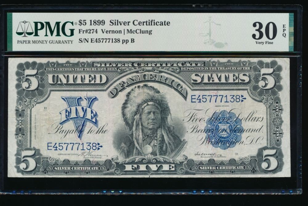One 1899 $5 Chief Silver Certificate PMG 30EPQ.
