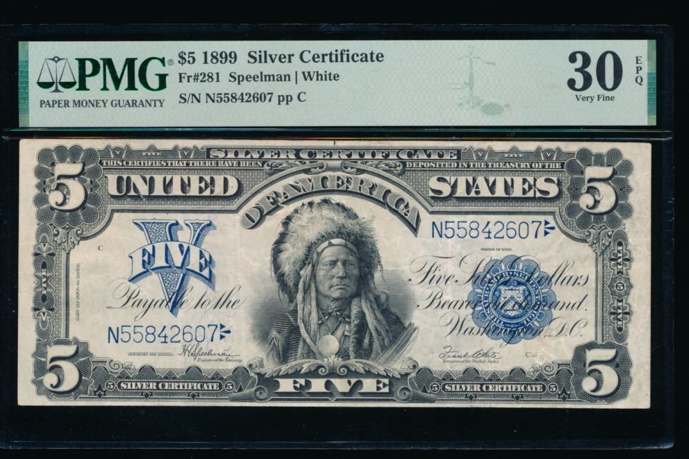 One 1899 $5 Chief Silver Certificate PMG 30EPQ.