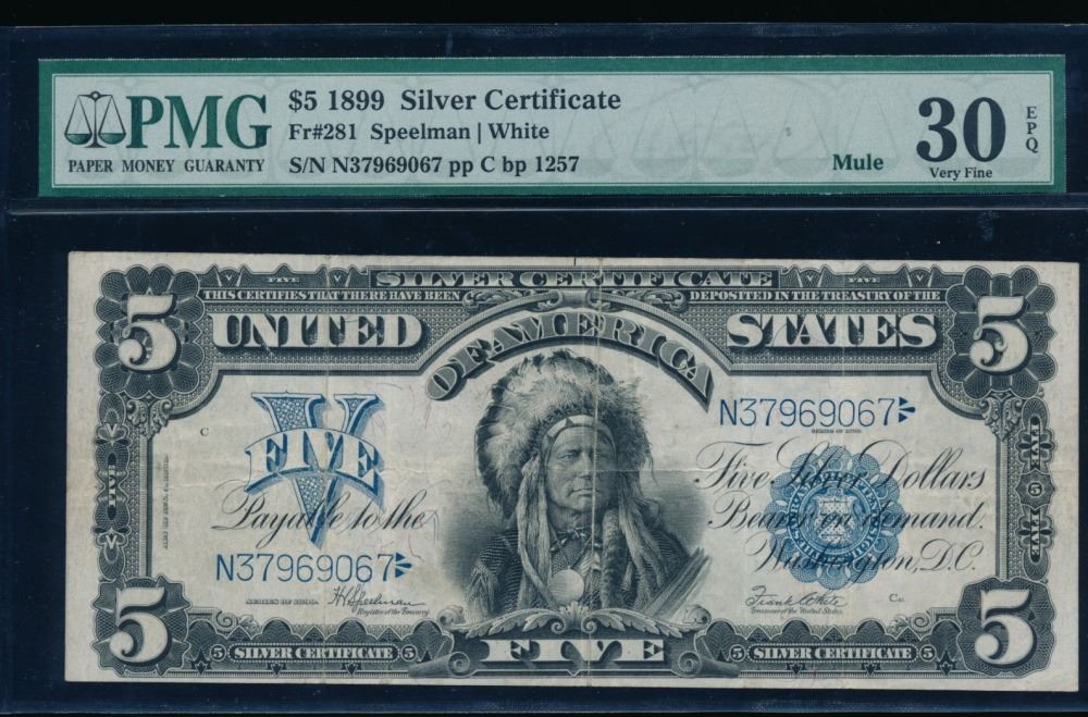 One 1899 $5 Chief Silver Certificate PMG 30EPQ.