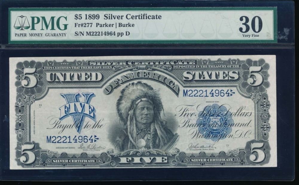 One 1899 $5 Chief Silver Certificate PMG 30.