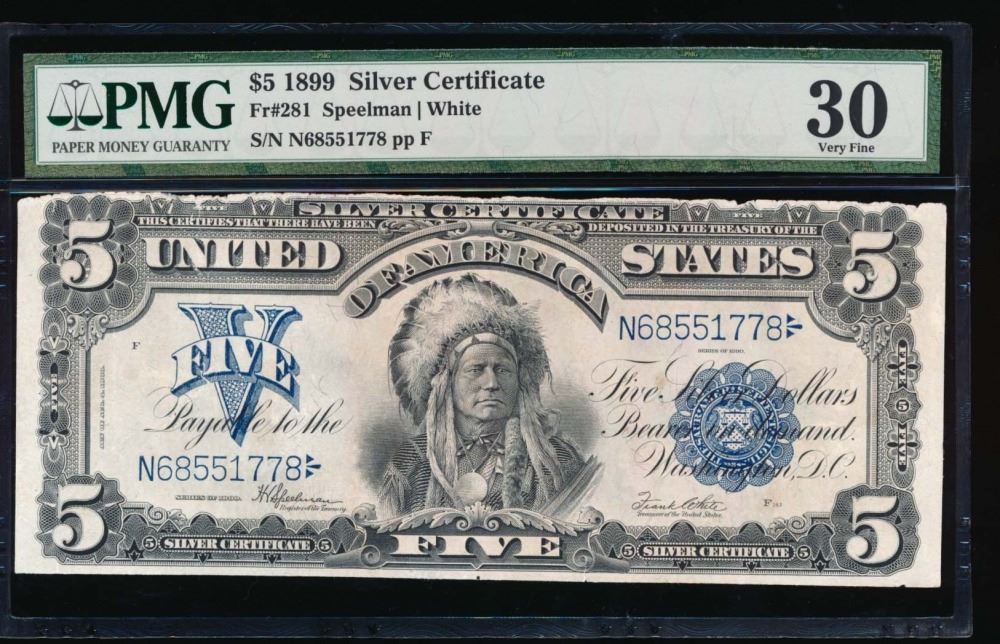 One 1899 $5 Chief Silver Certificate PMG 30.