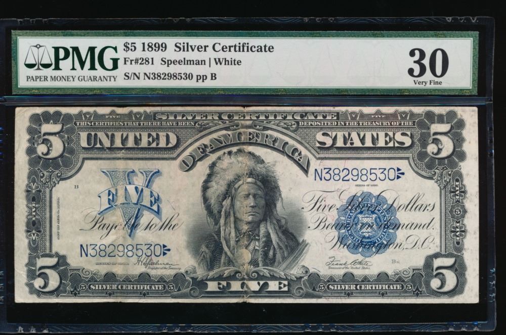 One 1899 $5 Chief Silver Certificate PMG 30.