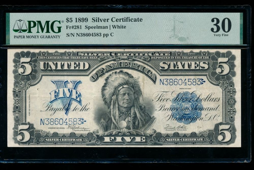 One 1899 $5 Chief Silver Certificate PMG 30.