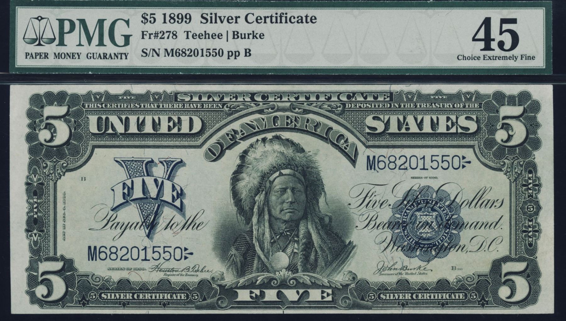 One 1899 $5 Chief Silver Certificate PMG 45.