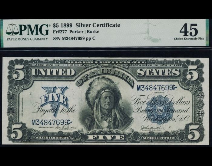 One 1899 $5 Chief Silver Certificate PMG 45.