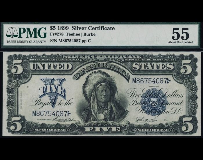 One 1899 $5 Chief Silver Certificate PMG 55.