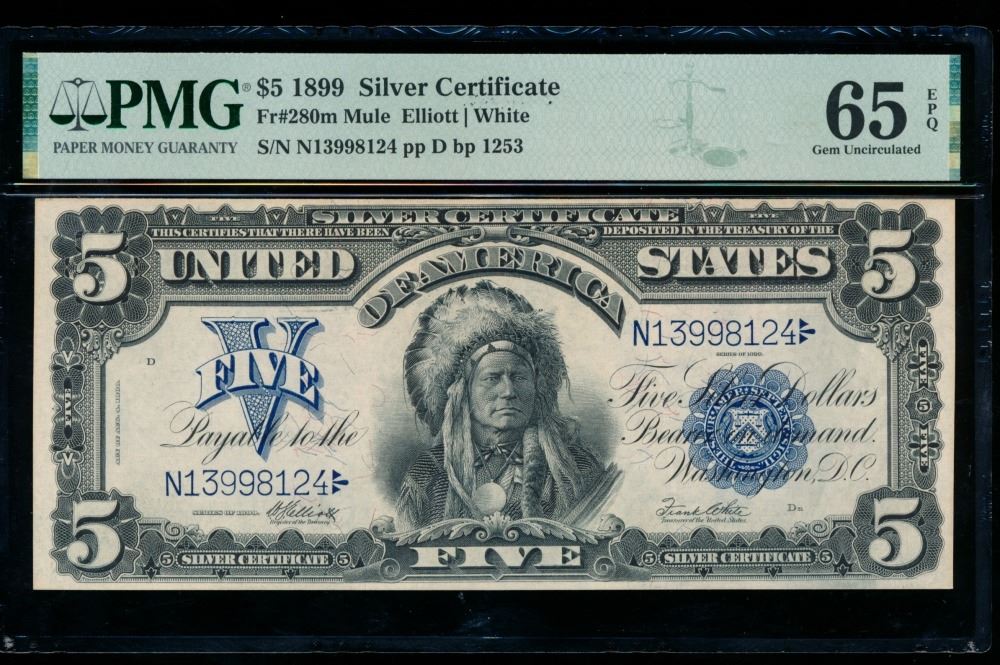 One 1899 $5 Chief Silver Certificate PMG 65EPQ.