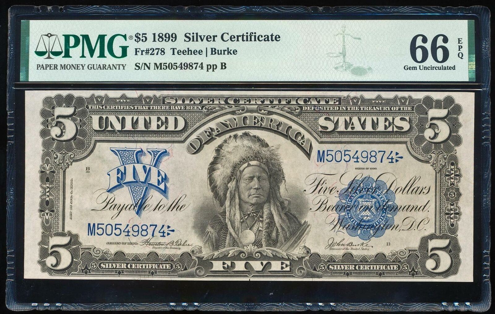One 1899 $5 Chief Silver Certificate PMG 66EPQ.