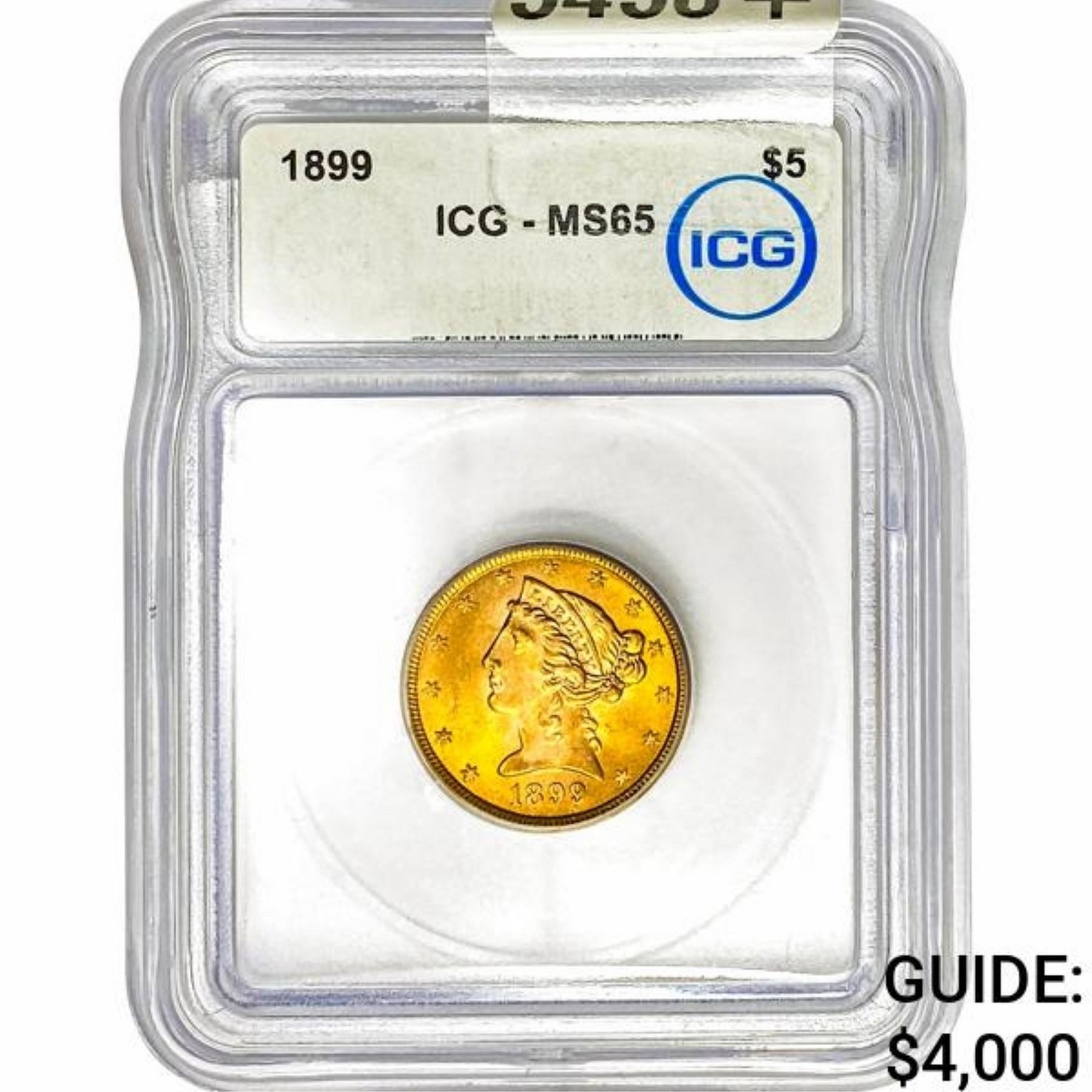 1899 $5 Gold Half Eagle ICG MS65
