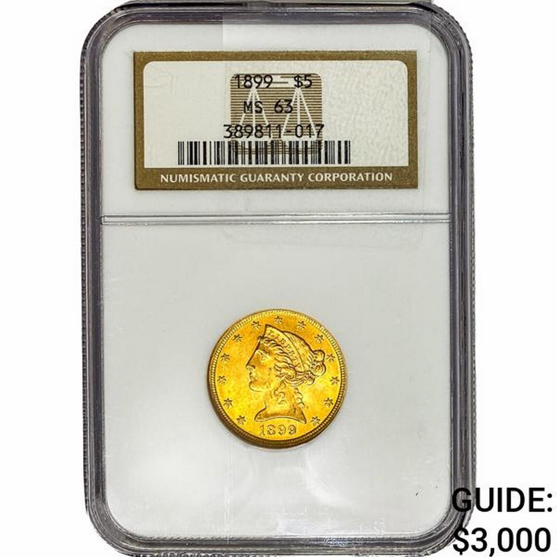 1899 $5 Gold Half Eagle NGC MS63