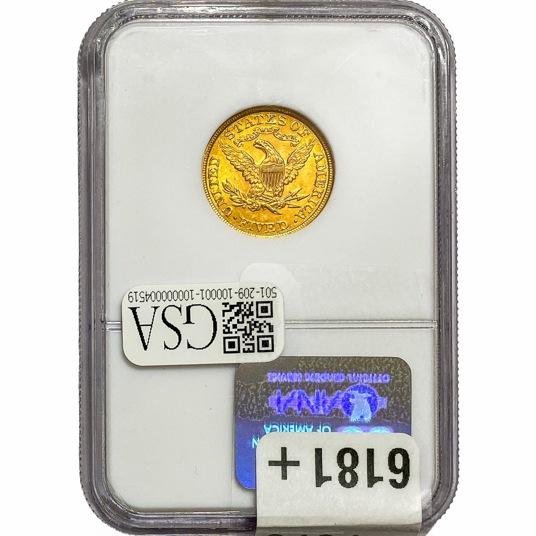 l. All non-certified coins and currency are guaranteed genuine, but are not guaranteed as to grade, since grading is a matter of opinion, an art and not a science, and therefore the description rendered by GSA or any third-party grading service may not agree with the opinion of others (including trained experts), and the same expert may not grade the same item with the same grade at two different times. GSA may, but is not obligated to, express an opinion as to non-certified numismatic items, in GSA’s opinion, or by its employees’ experience and the current interpretation of the American Numismatic Association’s standards as of the date the catalog was prepared. There is no guarantee or warranty expressed or implied that the grading opinions utilized by GSA, if any, will meet the standards of any grading service at any time in the future.