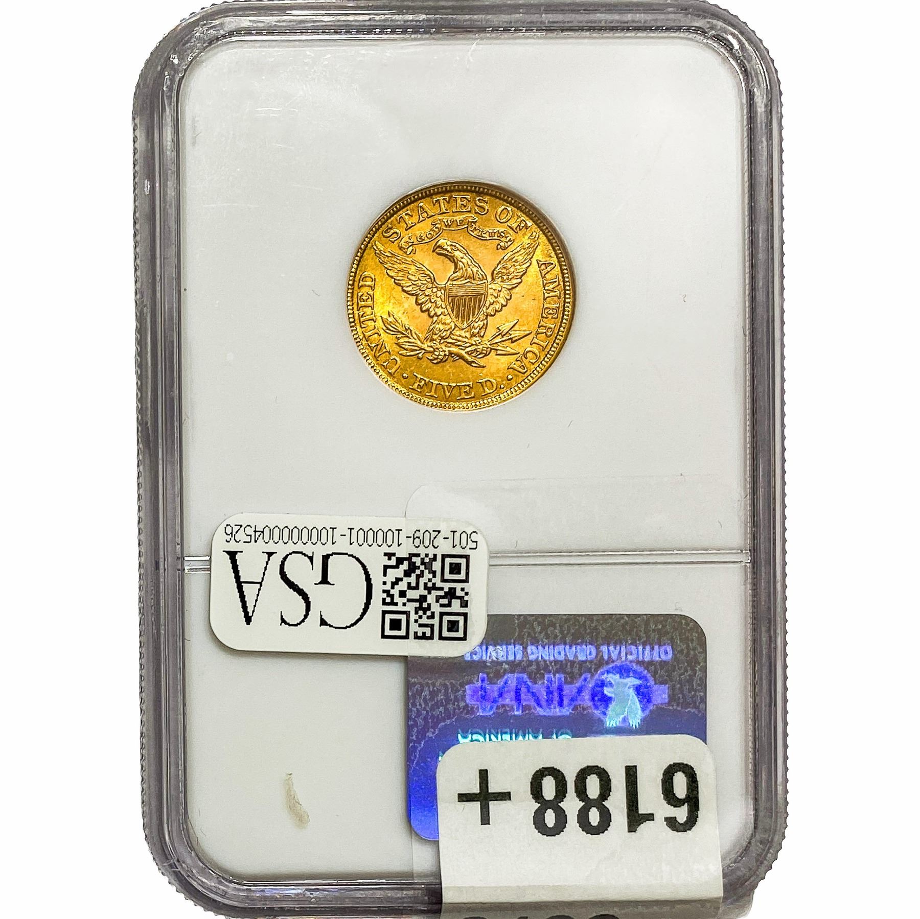l. All non-certified coins and currency are guaranteed genuine, but are not guaranteed as to grade, since grading is a matter of opinion, an art and not a science, and therefore the description rendered by GSA or any third-party grading service may not agree with the opinion of others (including trained experts), and the same expert may not grade the same item with the same grade at two different times. GSA may, but is not obligated to, express an opinion as to non-certified numismatic items, in GSA’s opinion, or by its employees’ experience and the current interpretation of the American Numismatic Association’s standards as of the date the catalog was prepared. There is no guarantee or warranty expressed or implied that the grading opinions utilized by GSA, if any, will meet the standards of any grading service at any time in the future.