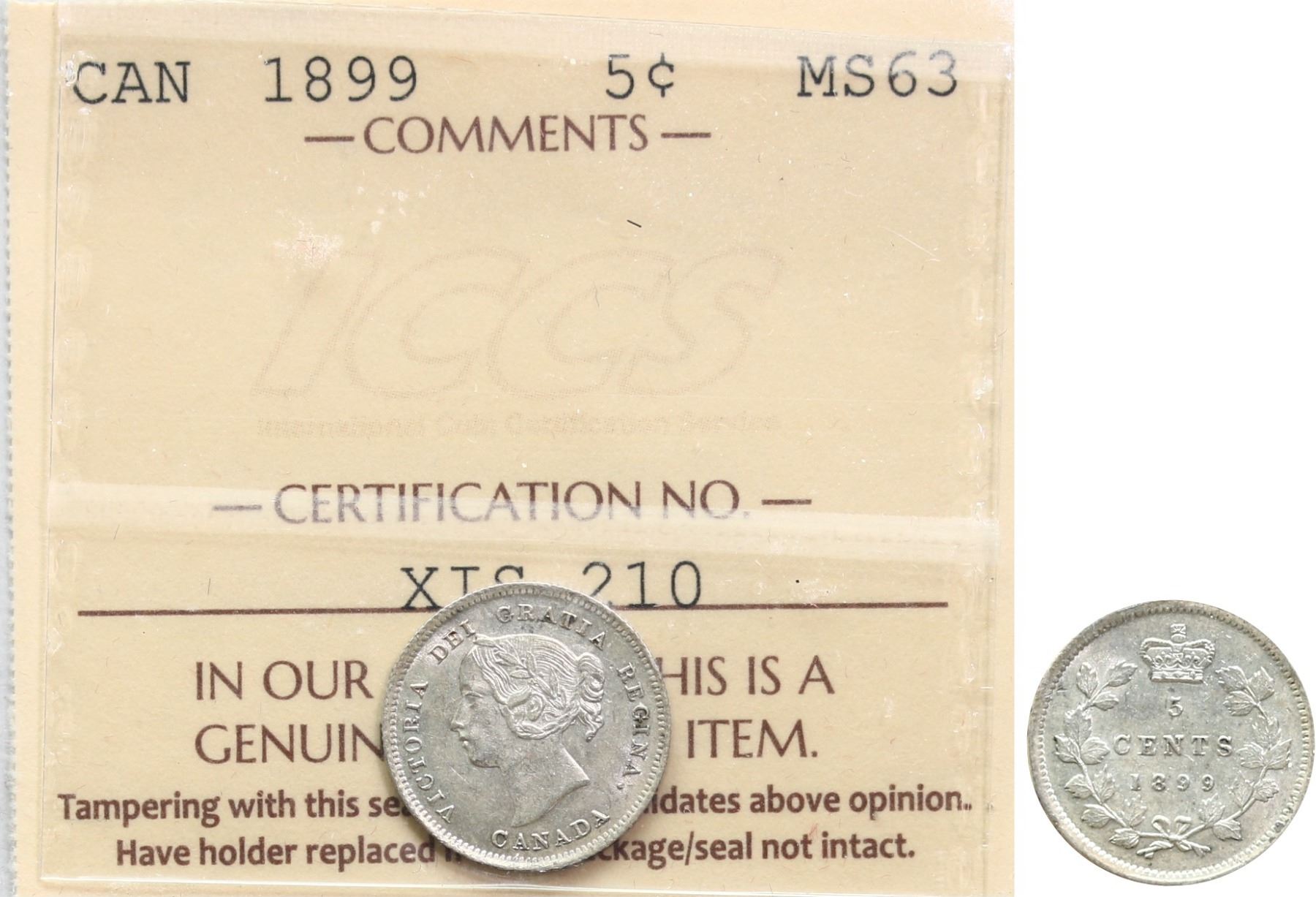 1899 5¢ ICCS Choice Mint State-63, Brilliant and lustrous.