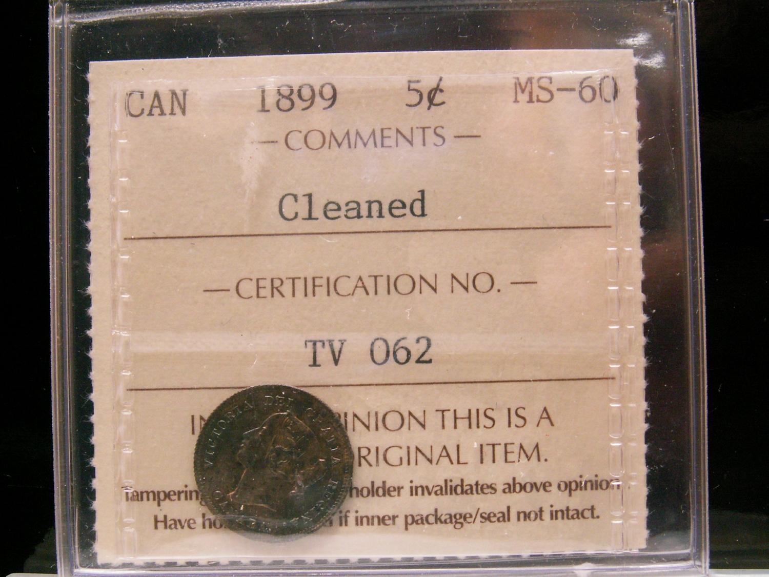 1899 5¢ ICCS MS60 Cleaned