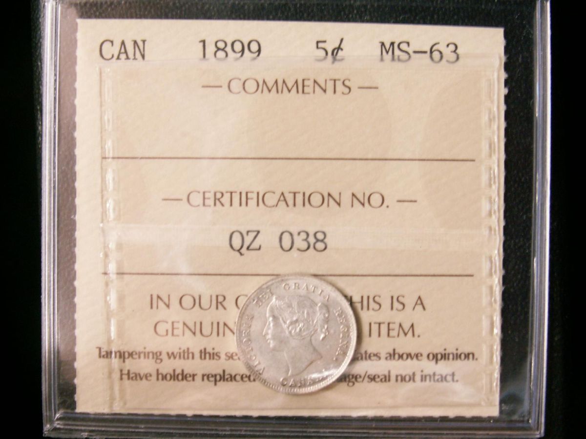 1899 5¢ ICCS MS63. Full white with frostlike finish.