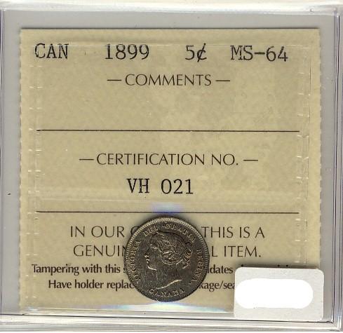 1899 5¢ ICCS MS64. Lovely russet tone with full lustre.