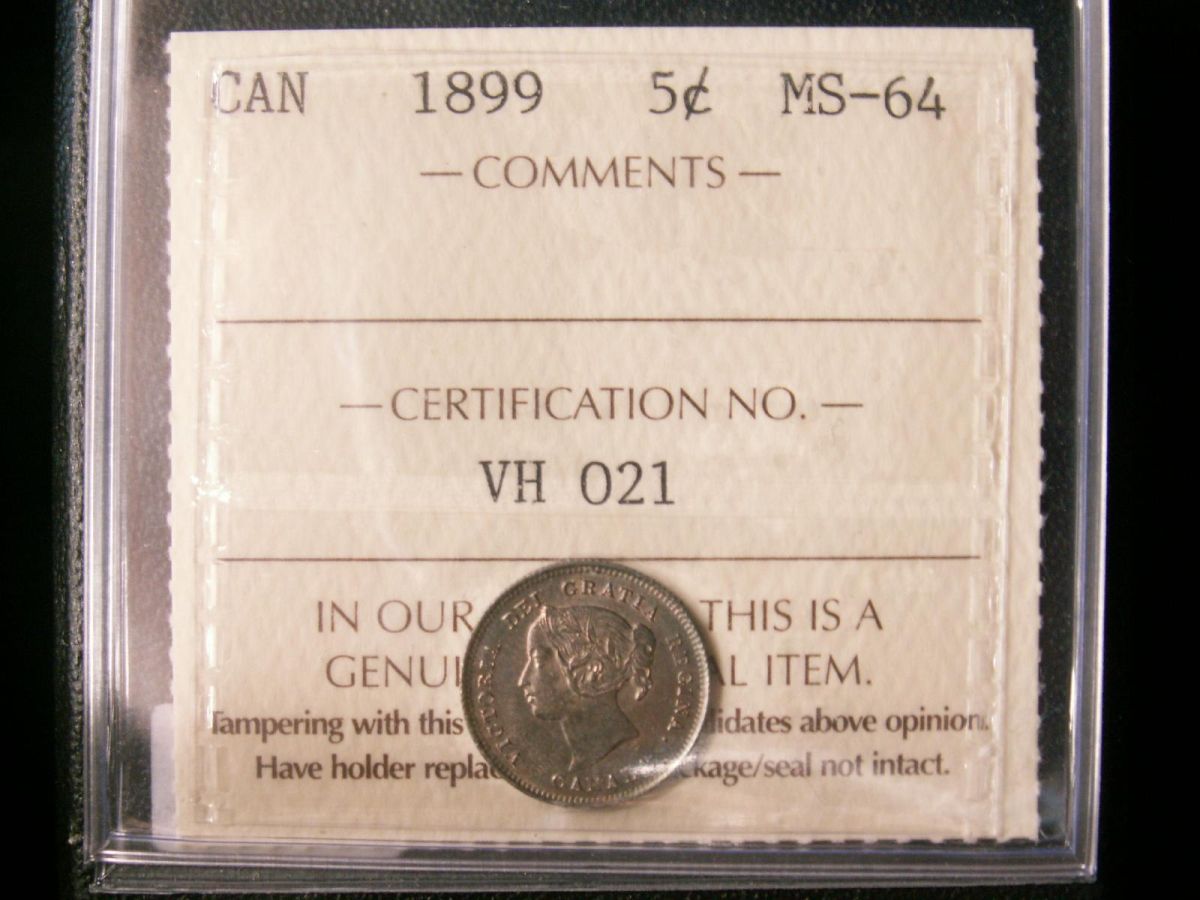 1899 5¢ ICCS MS64. Lovely russet tone with full lustre.