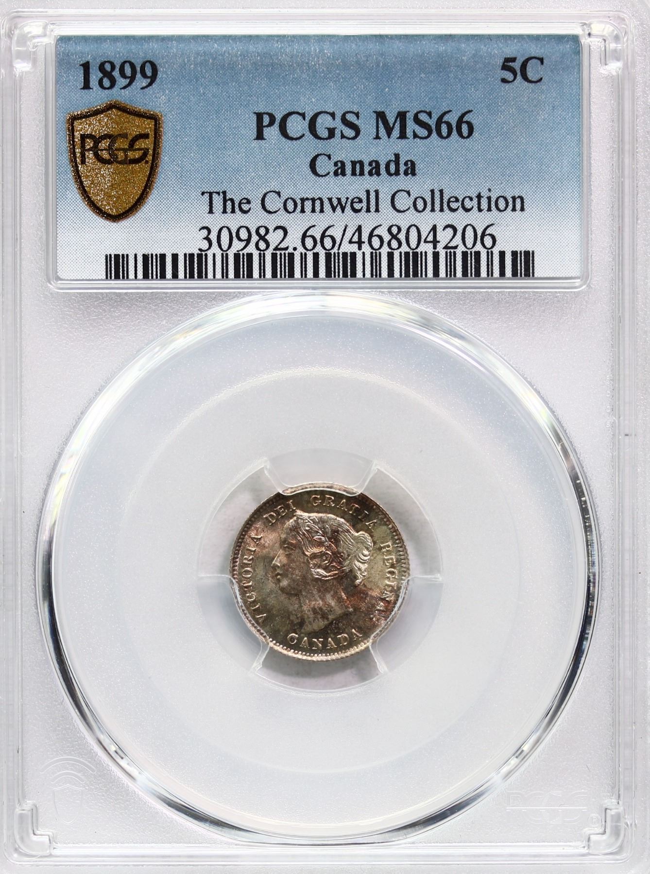 1899 5¢ ICCS Superb Gem Mint State-66 Light russet tone over full lustre. A stunning example. Ex. Cornwell