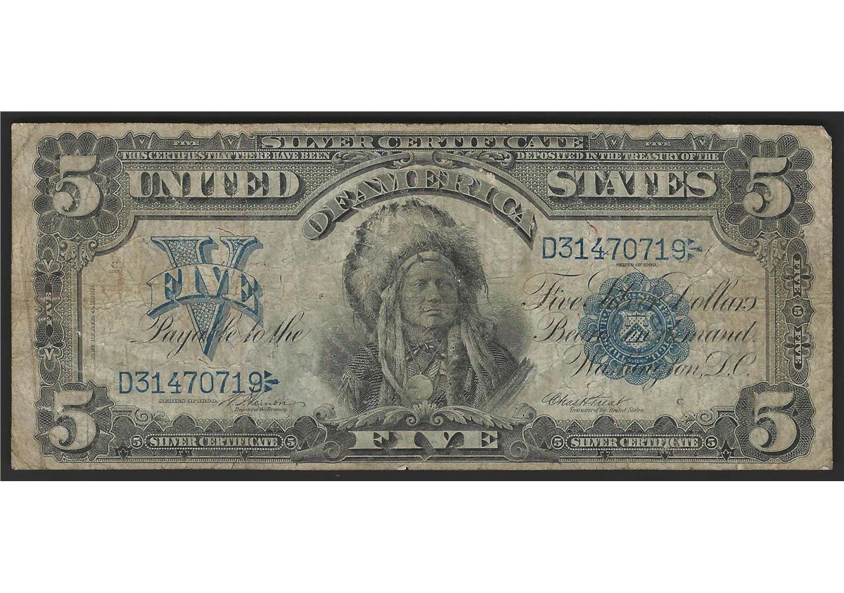 One 1899 $5 Indian Chief Silver Certificate Bank Note.