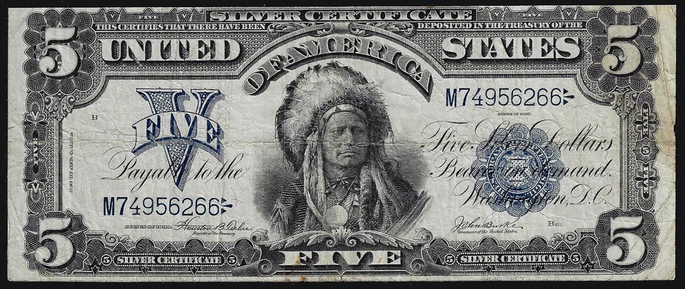 One 1899 $5 Indian Chief Silver Certificate Bank Note.